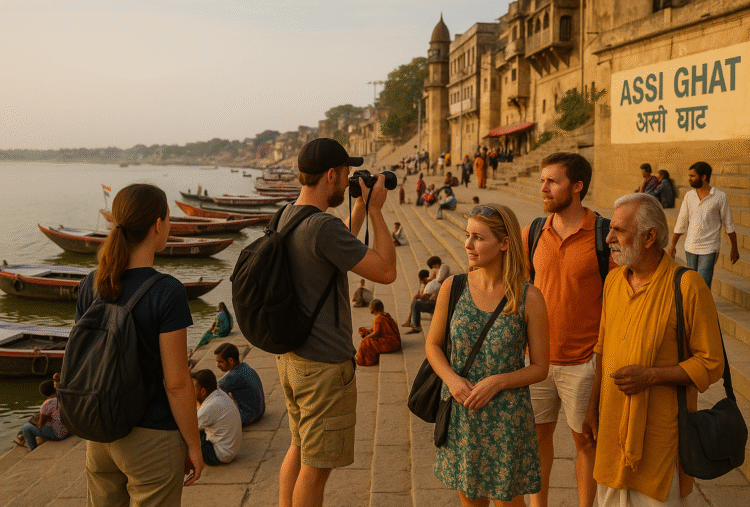 अस्सी घाट पर विदेशी पर्यटक भी खूब आते हैं। यहाँ वे योग, ध्यान और भारतीय संस्कृति को करीब से अनुभव करते हैं।